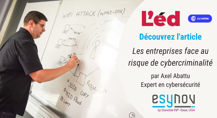 Découvrez l'article "Les entreprises face aux risques de cybercriminalité" publié dans le magazine de la CCI - l'Economie Dromoise. Axel Abattu, responsable de l'activité cybersécurité à Esynov et ingénieur - enseignant à Grenoble INP - Esisar, UGA, vous apporte un éclairage.