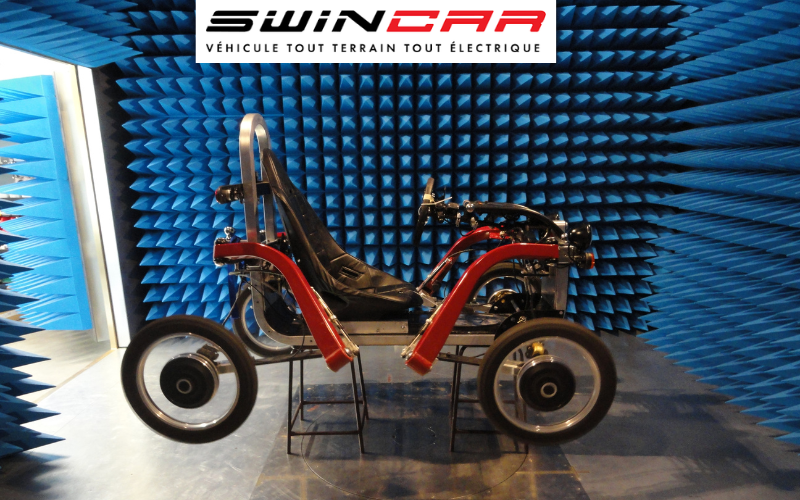 Le SWINCAR e-Spider est un véhicule électrique à 4 roues motrices et 4 roues directrices, capable d'évoluer sur des terrains très variés.