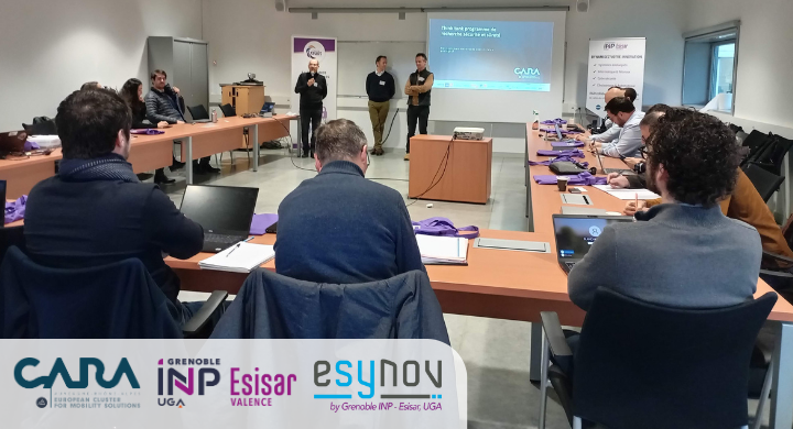 Grenoble INP-Esisar, UGA a accueilli CARA lors du think tank « Nos systèmes embarqués sont-ils bien protégés ? » le 26 janvier 2023. CARA est un cluster européen pour les solutions de mobilité qui rassemble 430 membres : industriels, opérateurs de transports, centres de recherche et de formation. CARA est labellisé Cluster de la Région Auvergne-Rhône-Alpes et Pôle de Compétitivité. Il représente la PFA Filière Automobile et Mobilités.